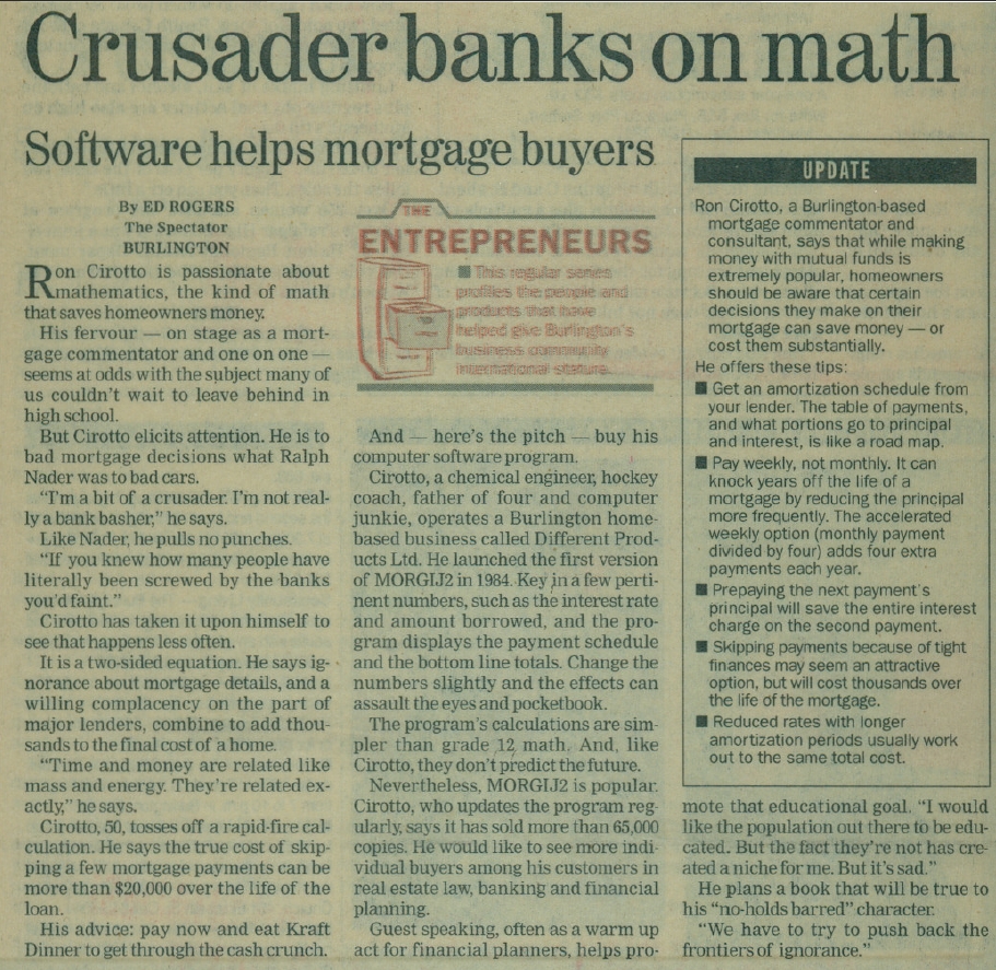 amortizationdotcom Mortgage Calculator for iPhone Introduction to Canadian and American Mortgages Seminar on prepaying principal (Part A) Seminar on prepaying principal (Part B) Global TV Interview regarding 40 Year Mortgages