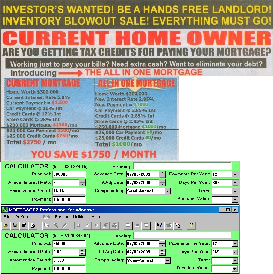 Canada’s Federal Finance Minister, Jim Flaherty announced on June 26, 2009, the appointment of a new 13 member task force on FINANCIAL LITERACY that will develop a national strategy to help Canadians learn the basics. It was reported the three areas of concern are as follows; Financing a home Donald Stewart, CEO of Sun Life Financial, chairman of this new task force, said Saving for retirement is obviously practical and extremely important, however my concern is “Financing a home”. This task force is expected to deliver its findings in the fall of 2010. I assume this task force will addresses very important practical issues such as understanding mortgage interest calculations, compound interest, effective interest rates, cost of borrowing for a mortgage and premature mortgage renewal “penalties” such as Interest Rate Differentials (IRD). A compulsory course, such as “Home Finance”, taught in Canadian high schools would be a very practical solution and prepare future Canadians for the real world. Hopefully, these new, “practical solutions for real people” will help Canadians understand advertisements such as the one that appeared in a current Canadian Real Estate publication. Lowering your monthly debt payments is realistic and a practical solution during these tough financial times. Canadians want to remain financially afloat and not lose their homes by defaulting on mortgage payments. However Canadians should also be aware of all costs of borrowing involved or be able to calculate them. In this example, Canadians should be able to calculate the two scenarios or at least be made aware the lower monthly payment solution has associated COSTS! These associated costs, in this example advertisement, are as follows. 1. The time to pay off the new mortgage has almost doubled (31.53 years vs 16.16 years). These are some of the practical home financing skills that need to be taught to real people in real life, starting with high school students. The last course on a high school graduates mind before graduating should be home finance. The compulsory home finance mathematics course should be taught in grade 12 and algebra course must also be a compulsory prerequisite credit in grade 11. Too long a time span between the two courses is not advised.