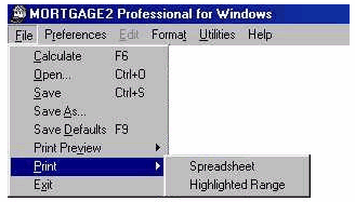 Below is the main CALCULATOR/SPREADSHEET screen that always appears with default information in the CALCULATOR and a SPREADSHEET based upon the default information (you can change the default info to anything you like). If you want to print the entire SPREADSHEET then click, File, Print, Spreadsheet and the printed schedule (only part of a schedule is shown) will appear as shown below. If you wanted to print just a portion of the SPREADSHEET then, highlight that portion of the SPREADSHEET with your mouse and then click, File, Print, Highlighted Range